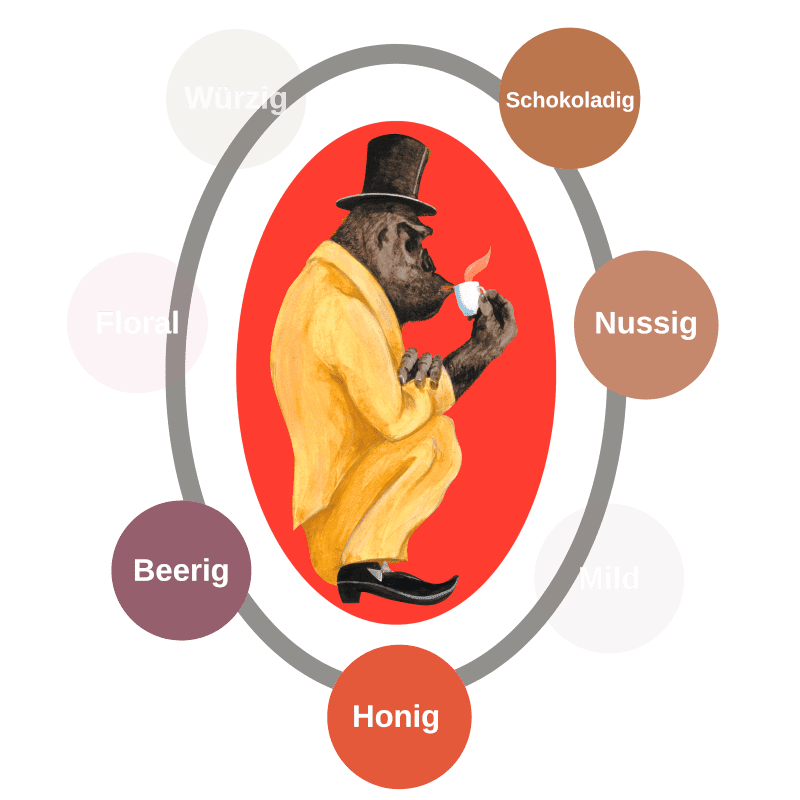 | Geschmacksrichtung | Schokolade, Nussig |